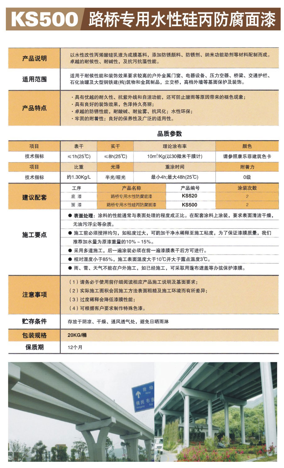 KS500路桥专用水性硅丙防腐面漆